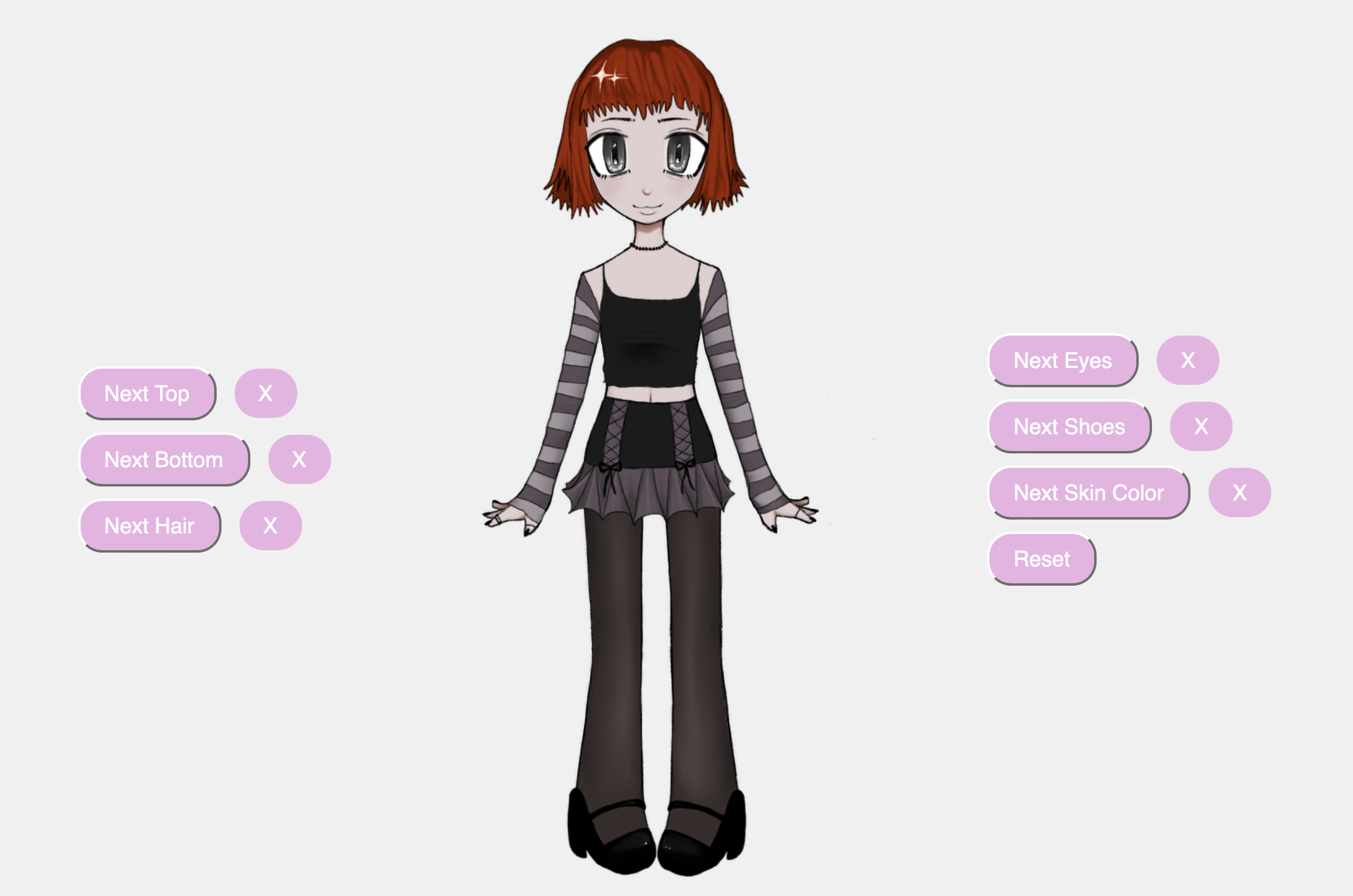 This project is a Web based Dress-up game. I drew all the assets using Procreate and utilized the JavaScript and CSS together to allow the clothes to be layered and their visibility to be toggled on top of a base body. It is hosted through GitHub Pages and is currently an ongoing project as I intend to add more clothing designs and “game” functionality.